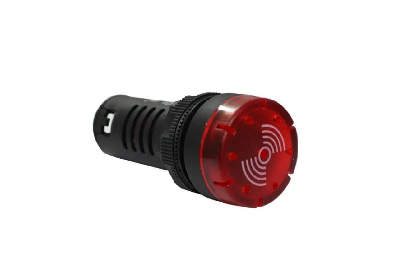 Sinaleiro sonoro luminoso vermelho sonalarme buzzer 24V p/ painel comando