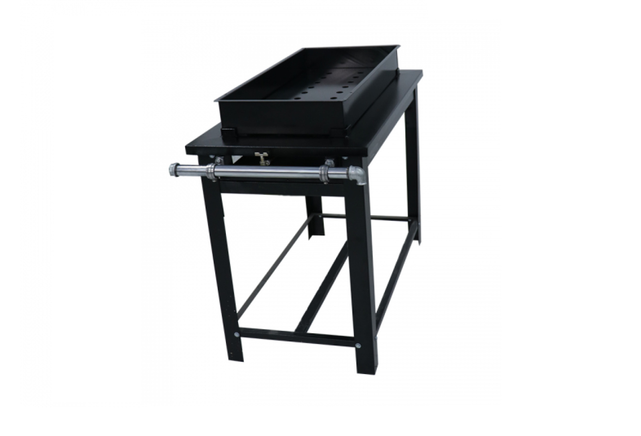 Corpo e mesa de aço carbono super resistente, em pintura pó eletrostática, com base fosfatizada, grelha 40x40cm e mesa com perfil de 10cm;