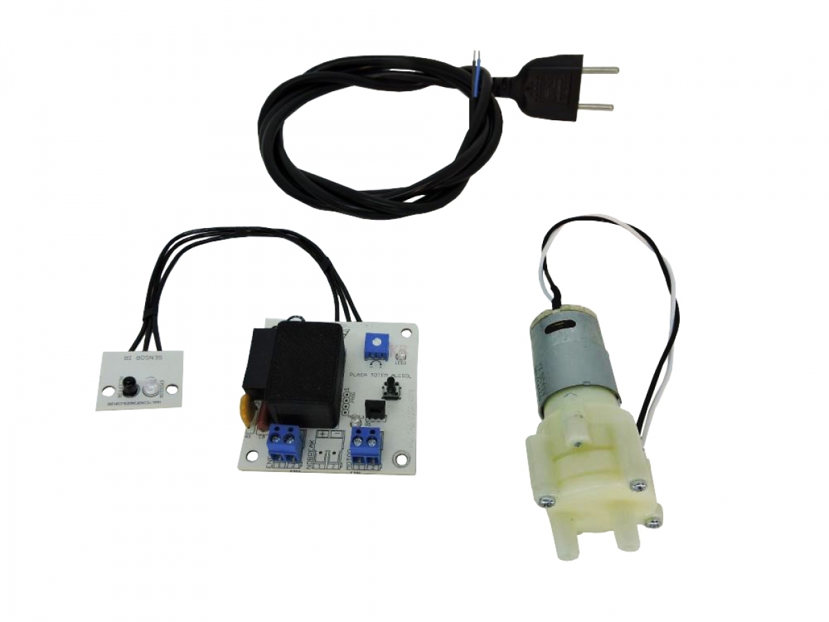 Kit completo de bomba dosadora + controlador + cabo plug, tudo o que vc precisa para automatizar o seu totem de álcool em gel com qualidade e garantia.